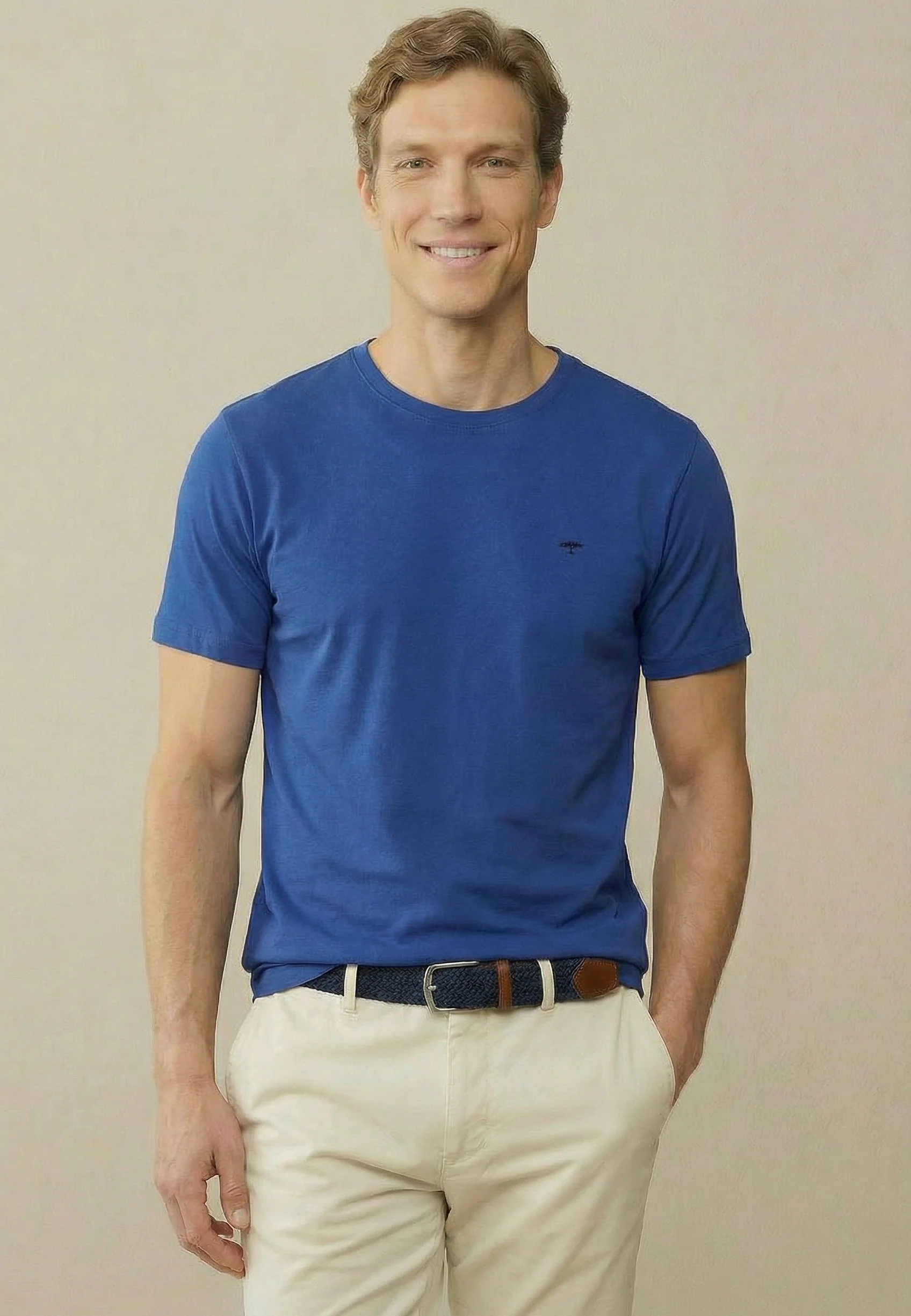Βαμβακερό μπλουζάκι με στρογγυλή λαιμόκοψη-μπλε