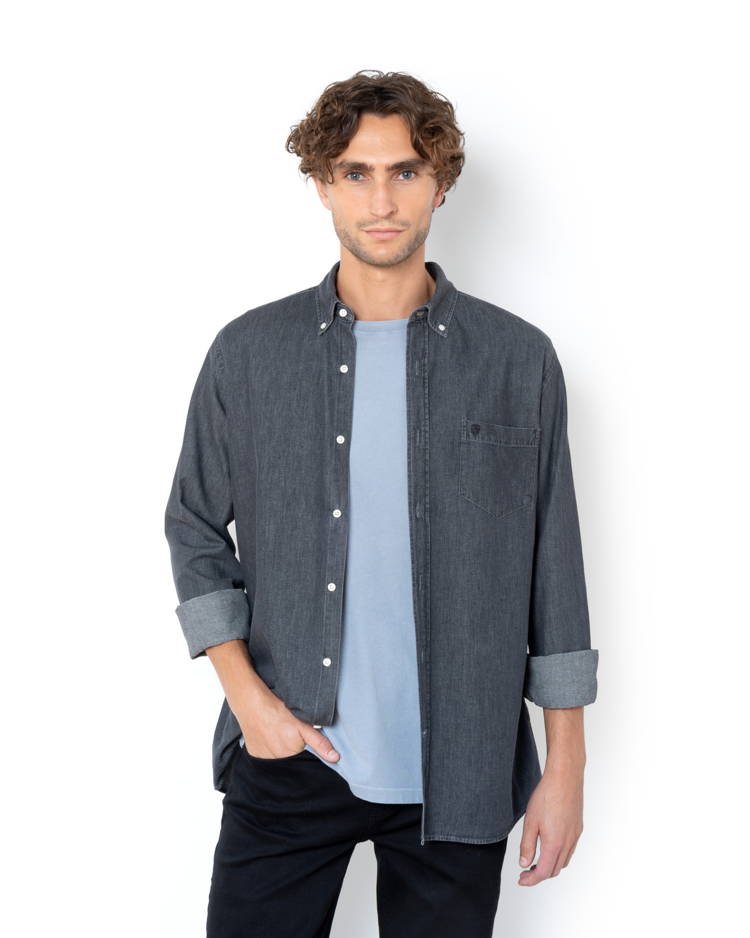 ΠΟΥΚΑΜΙΣΟ DENIM REGULAR FIT-ΜΑΥΡΟ