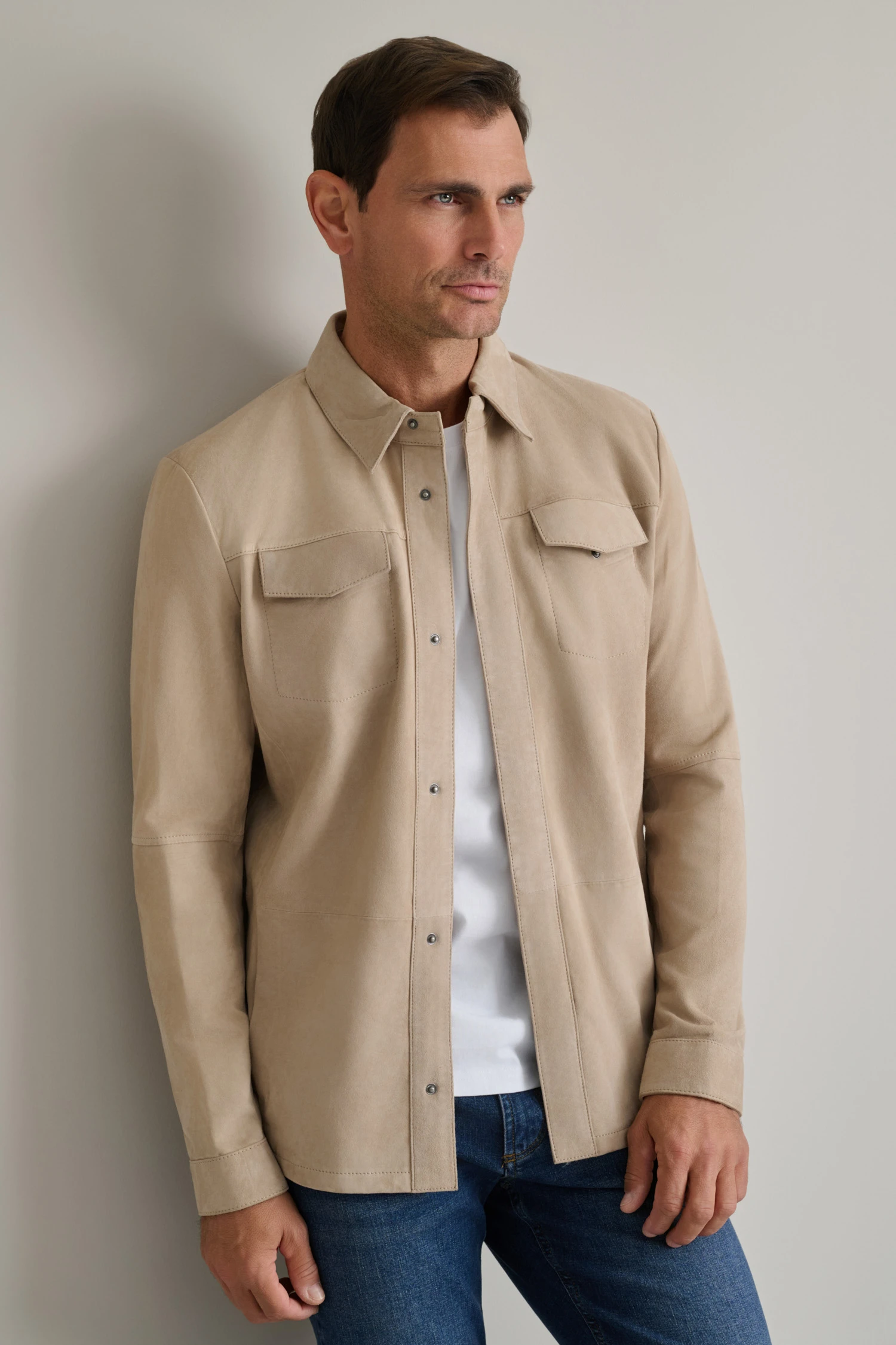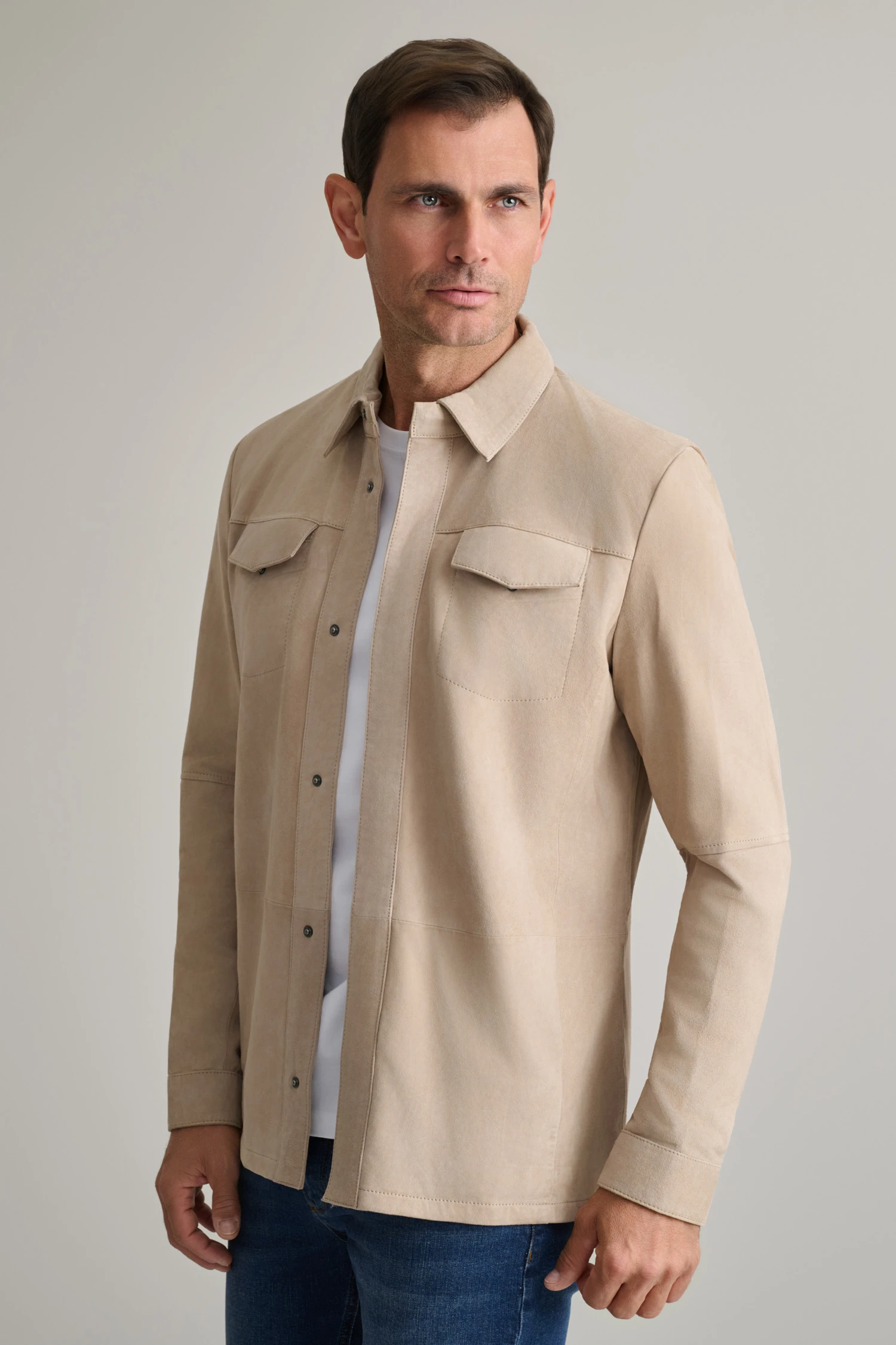 ΔΕΡΜΑΤΙΝΟ OVERSHIRT-ΓΚΡΙ-ΜΠΕΖ