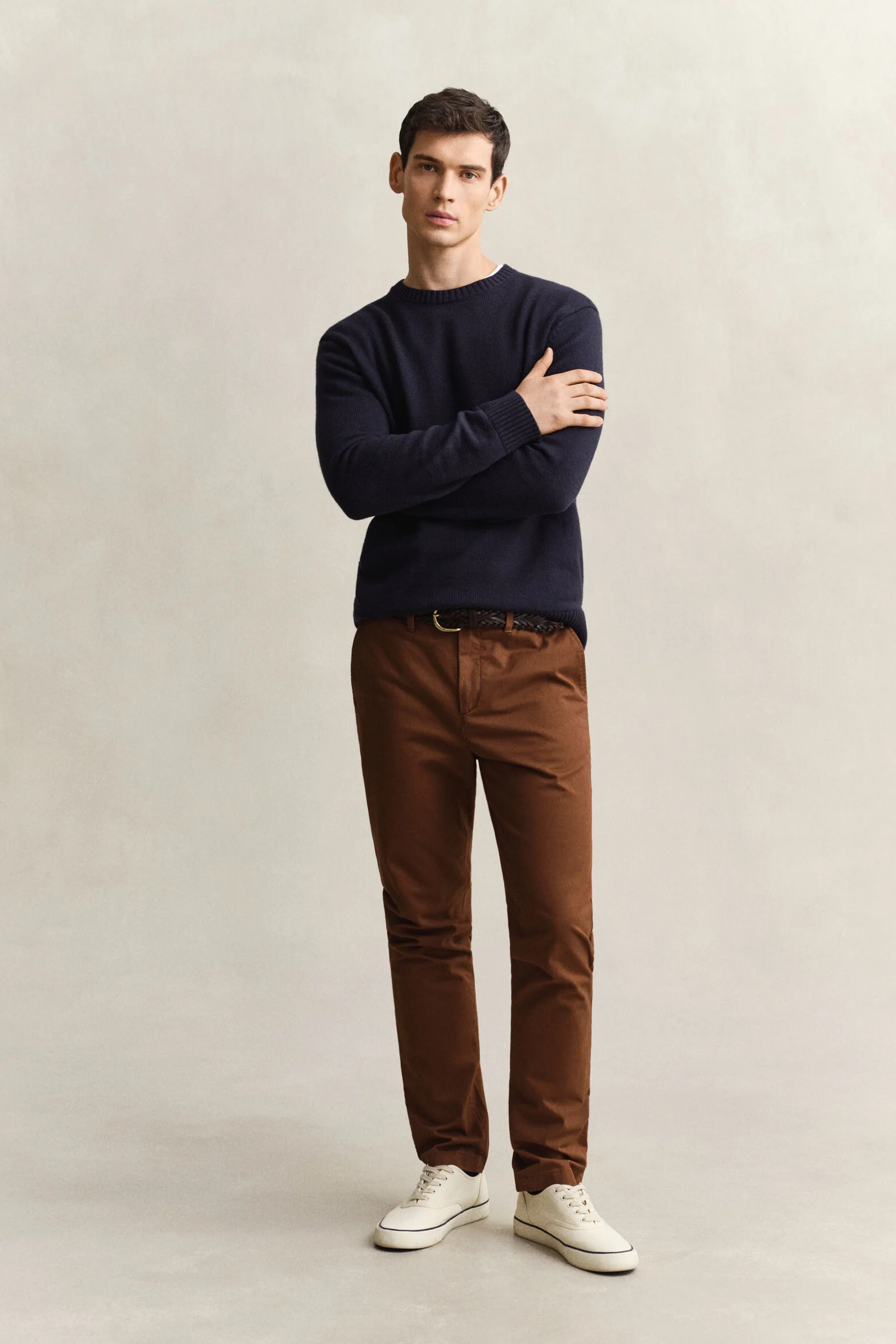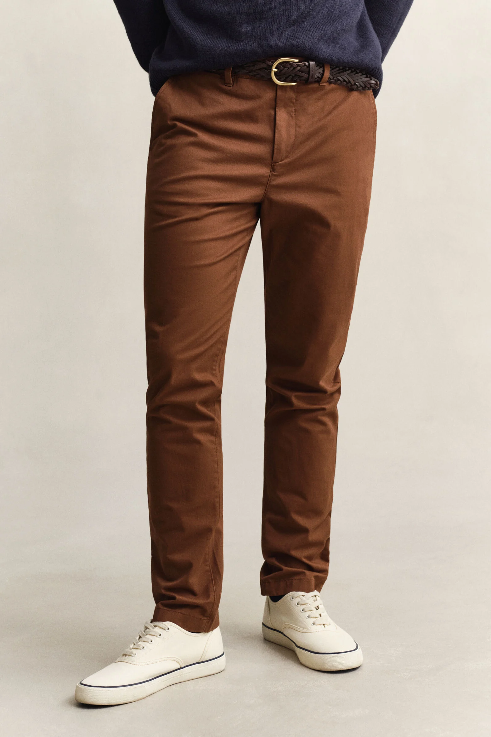 Με κομψή, αεροδυναμική εμφάνιση, αυτά τα chinos παντελόνια αποτελούν μια μοντέρνα εκδοχή ενός αγαπημένου preppy icon. Κατασκευασμένα με υψηλή περιεκτικότητα σε οργανικό βαμβάκι και μια πινελιά άνεσης και ελαστικότητας, έχουν μεσαίο ύψος στη μέση και στενή εφαρμογή από τους γοφούς μέχρι το πόδι. Οι λεπτομέρειες περιλαμβάνουν άνοιγμα με φερμουάρ, θηλιές ζώνης, επώνυμα κουμπιά, λοξές μπροστινές τσέπες και τσέπες με κουμπιά στο πίσω μέρος. Αυτό το στυλ έχει ανανεωθεί αυτή τη σεζόν για μια νέα, βελτιωμένη εφαρμογή.
