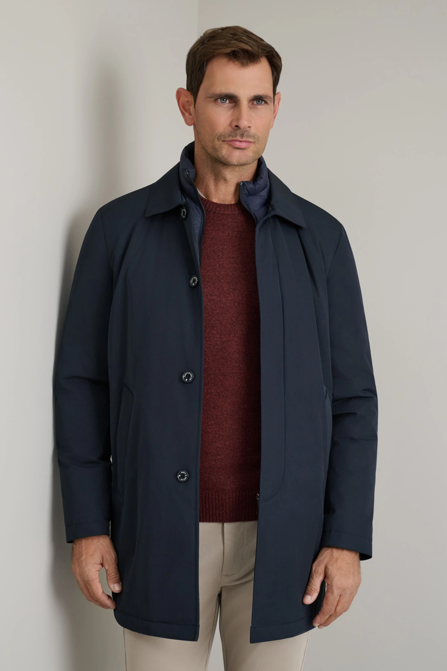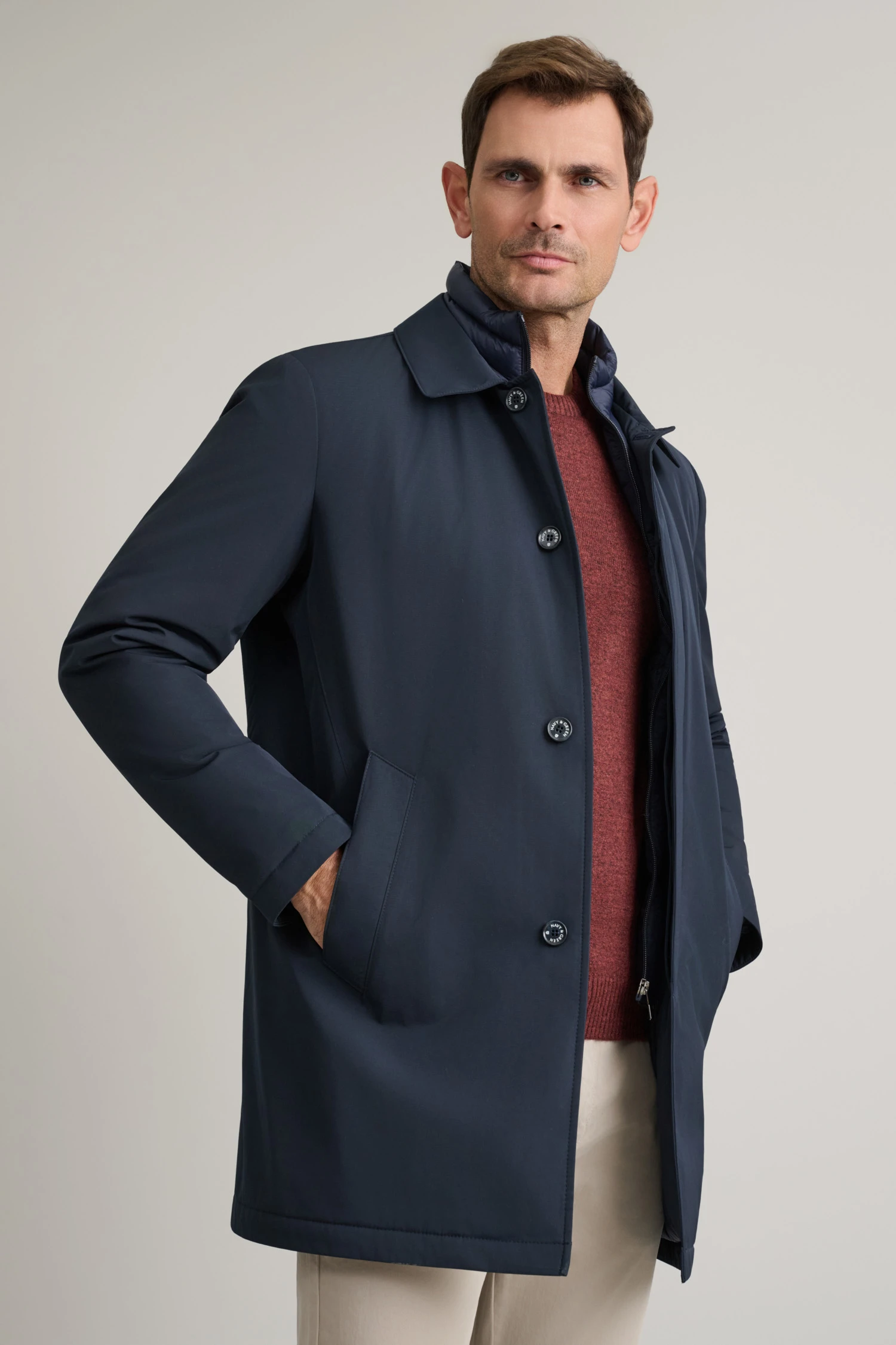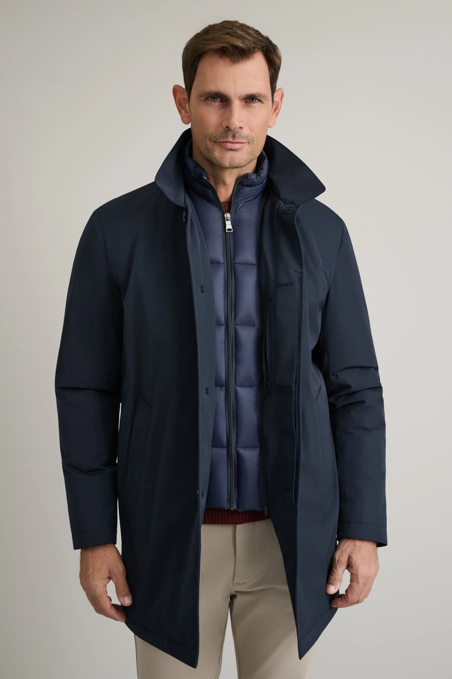 • Παλτό από τεχνικό ύφασμα με αποσπώμενο γιλέκο
