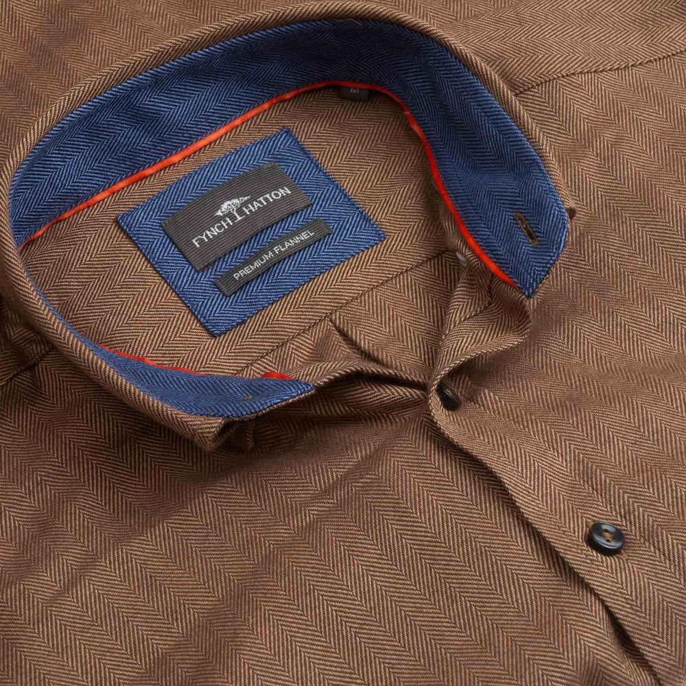 Fynch-Hatton Πουκάμισο Flannel Κανονική Γραμμή-καφε