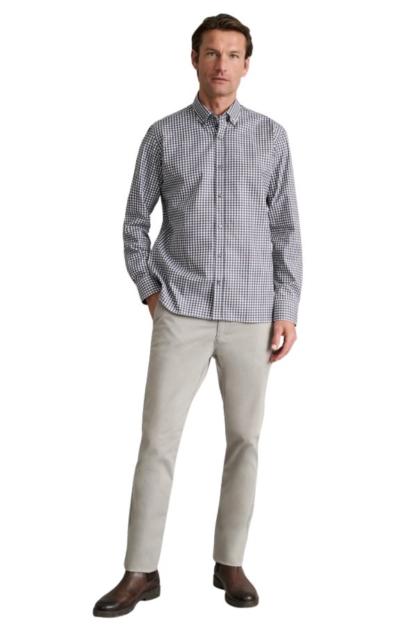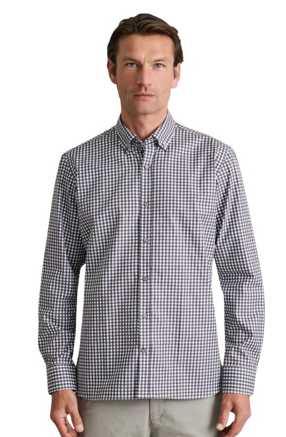 Navy & Green ανδρικό πουκάμισο καρό comfort fit-γκρι-ασπρο